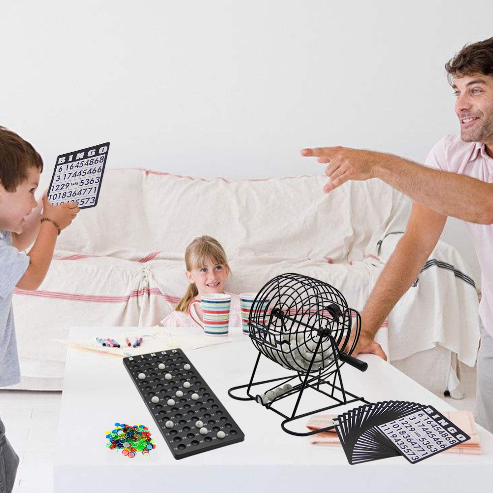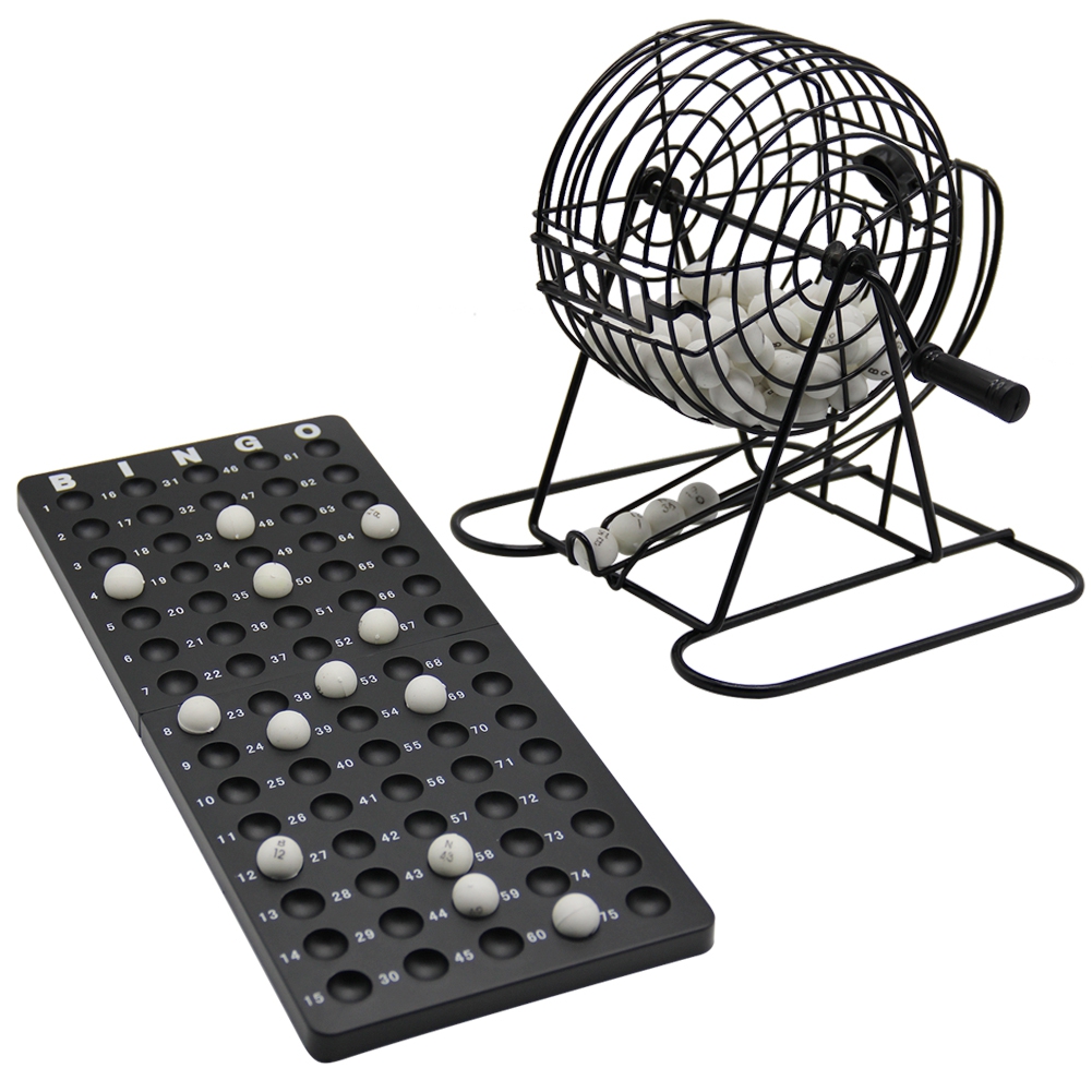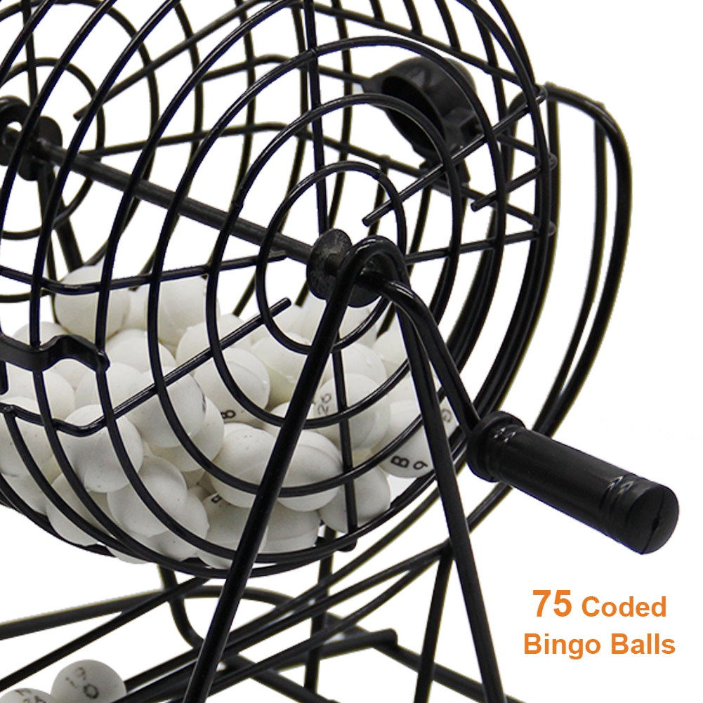 - ☼DELUXE BINGO SET: Each bingo game set includes 18 Bingo cards, 150 Bingo chips, a Bingo board, a metal cage, 75 plastic balls and instructions in the cage.